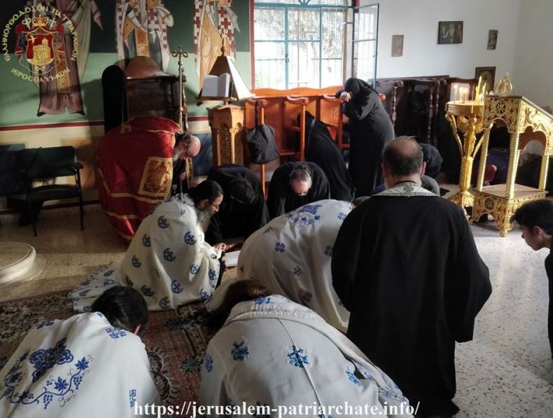 Ἅμα τῇ θείᾳ Λειτουργίᾳ ἀνεγνώσθησαν αἱ εὐχαί τῆς Γονυκλισίας, μία εἰς τόν Ναόν, μία εἰς τήν Κατακόμβην, μία εἰς τό Ὑπερῷον καί ἀνεπέμφθη δέησις ἐντός τοῦ χώρου τοῦ τάφου τοῦ προφητάνακτος Δαυΐδ, εἰσελθόντος τοῦ Ἀρχιερέως καί περιωρισμένου ἀριθμοῦ κλήρου καί τοῦ Γενικοῦ Προξένου τῆς Ἑλλάδος εἰς τά Ἱεροσόλυμα κ. Χρήστου Σοφιανοπούλου.