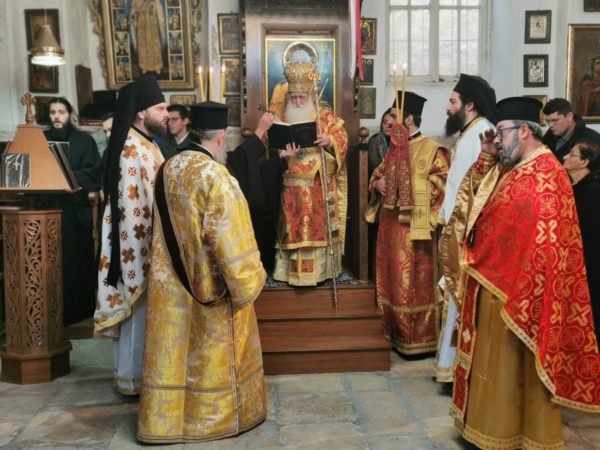 Την Πατριαρχική και Αρχιερατική Συνοδεία και το εκκλησίασμα δεξιώθηκε ο καλώς επιμελούμενος των της Μονής ηγούμενος Αρχιμανδρίτης π. Στέφανος.