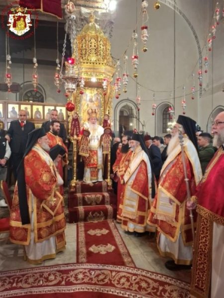 Στο Άγιο Σπήλαιο μετά τους Αναβαθμούς αναγνώσθηκε το Ευαγγέλιο της Γεννήσεως: «εξήλθε δόγμα παρά Καίσαρος Αυγούστου απογράφεσθαι πάσαν την Οικουμένην…» εκ του κατά Λουκάν Αγίου Ευαγγελίου αραβιστί και ελληνιστί και εκφωνήθηκε το Χριστουγεννιάτικο Μήνυμα του Μακαριωτάτου από τον Γέροντα Αρχιγραμματέα Σεβασμιώτατο Αρχιεπίσκοπο Κωνσταντίνης κ. Αρίσταρχο στην ελληνική και από τον Πρεσβύτερο π. Ήσσα Μούσλεχ στην αραβική.