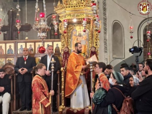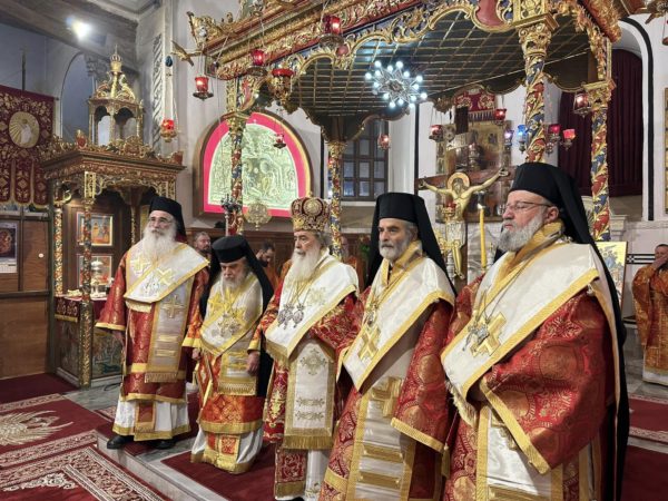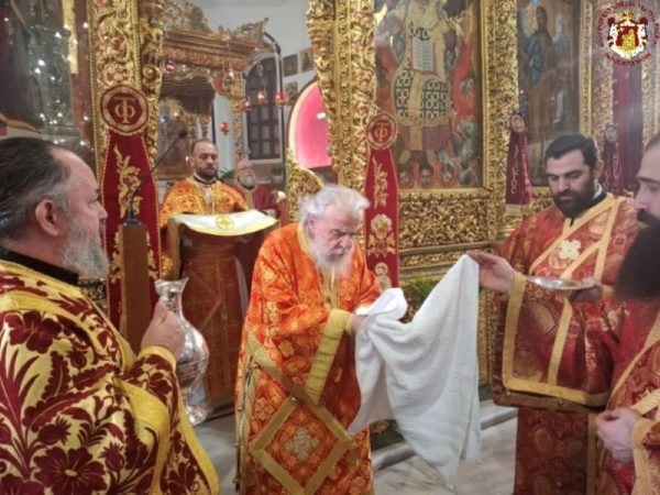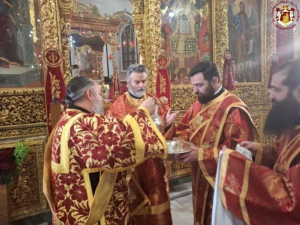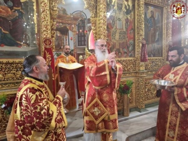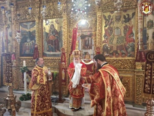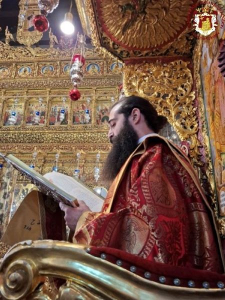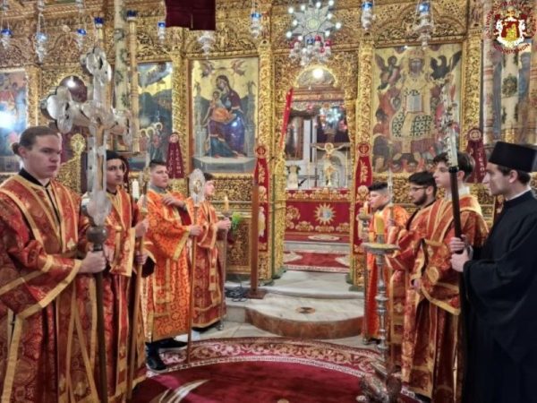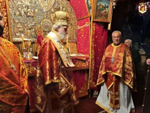 Στη συνέχεια ο Μακαριώτατος προεξήρξε του Όρθρου και της θείας Λειτουργίας, συλλειτουργούντων των Σεβασμιωτάτων Αρχιεπισκόπων Γεράσων κ. Θεοφάνους, Κωνσταντίνης κ. Αριστάρχου, Πέλλης κ. Φιλουμένου και Μαδάβων κ. Αριστοβούλου, Αγιοταφιτών Ιερομονάχων ων πρώτος ο Γέρων Καμαράσης Αρχιμανδρίτης π. Νεκτάριος, Ιερέων αδελφών Ορθοδόξων Εκκλησιών, ψαλλόντων του Ιεροδιακόνου π. Συμεών και του νεοχειροτονηθέντος διακόνου π. Ευσταθίου και της χορωδίας της ενορίας της Μπετζάλλας, παρουσία του Γενικού Προξένου της Ελλάδος στα Ιεροσόλυμα κ. Δημητρίου Αγγελοσοπούλου και του προσωπικού του Προξενείου.