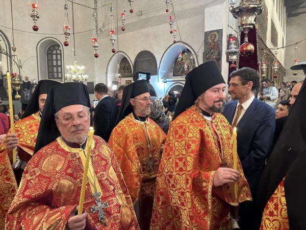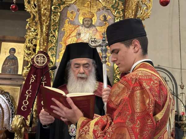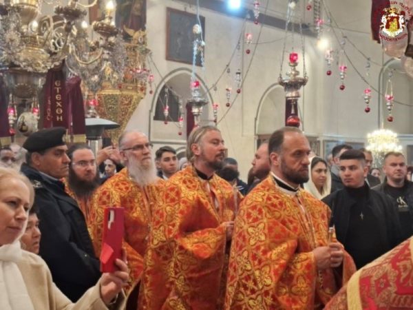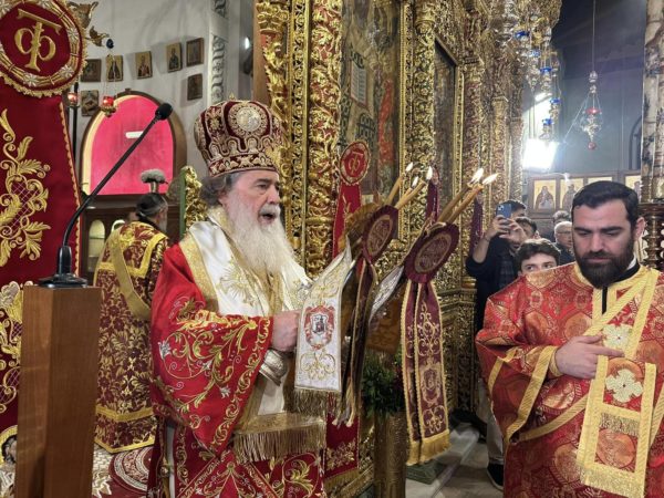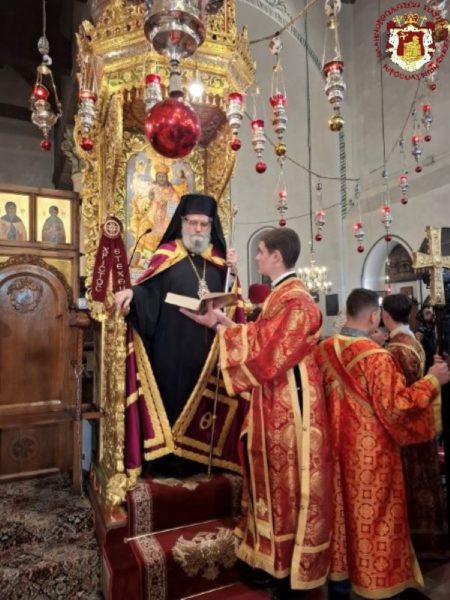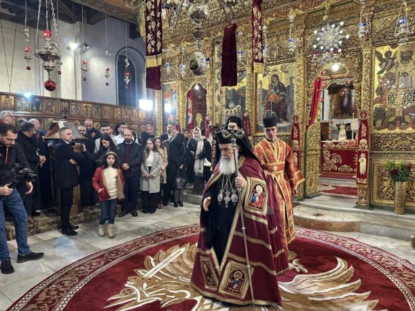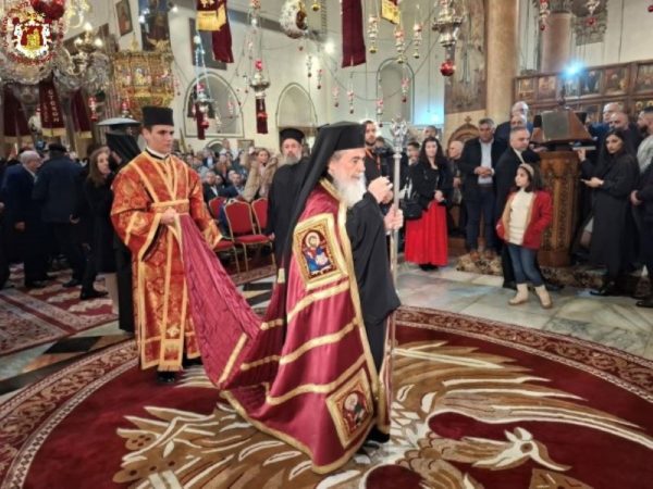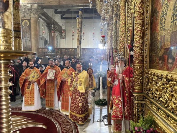 Η Ακολουθία των Χριστουγέννων άρχισε την νύκτα της Παραμονής της εορτής, 24ης Δεκεμβρίου 2024/ 6ης Ιανουαρίου 2025 στην Βασιλική της Γεννήσεως στη Βηθλεέμ. Του Όρθρου προεξήρξεν εκ μέρους του Πατριάρχη Ιεροσολύμων κ.κ. Θεοφίλου ο Πατριαρχικός Επίτροπος Σεβασμιώτατος Μητροπολίτης Καπιτωλιάδος κ. Ησύχιος. Στη συνέχεια με την ευλογία του Μακαριωτάτου άρχισαν οι Καταβασίες των Χριστουγέννων.