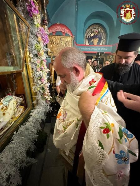 Ἡ κατανυκτική καί μεγαλοπρεπής τελετή αὐτή ἤρχισε λίαν πρωΐ τῆς ὡς ἄνω ἡμέρας μετά τήν Ἱεράν Ἀγρυπνίαν εἰς τό ἐν τῷ Μετοχίῳ ἱερόν παρεκκλήσιον αὐτῆς, τῆς ὁποίας προεξῆρξεν ὁ Ἀρχιμανδρίτης π. Φιλούμενος.