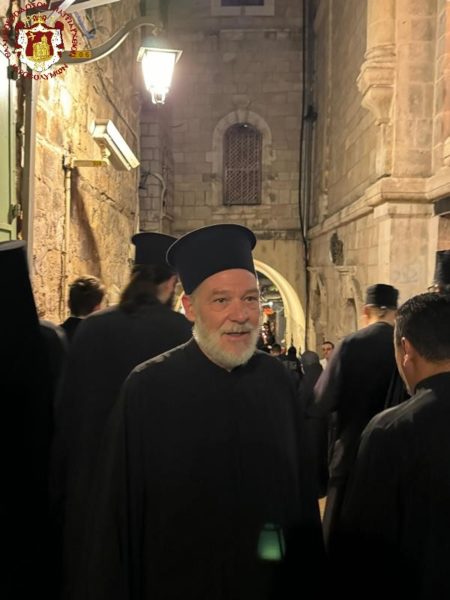 Η κατανυκτική και μεγαλοπρεπής τελετή άρχισε το πρωΐ μετά την Ιερά Αγρυπνία στο Μετόχι της Γεθσημανής, της οποίας προεξήρξε ο Αρχιμανδρίτης π. Φιλούμενος.