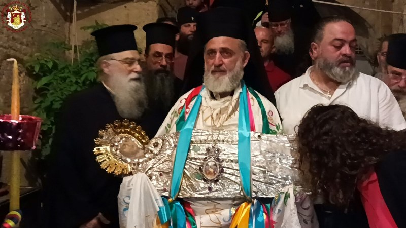 Από τό παρεκκλησί, η σεπτή Εικόνα εσβαστάζετο επιστηθίως από τον Ηγούμενο της Γεθσημανής Σεβασμιωτάτο Μητροπολίτη Ελενουπόλεως κ. Ιωακείμ, περιστοιχουμένου από Αγιοταφιτών Αρχιερέων και Ιερέων και πολλών άλλων κληρικών και μοναχών άλλων Ορθοδόξων Εκκλησιών και ακολουθούντων χιλιάδων προσκυνητών, ψαλλόντων το Απολυτίκιον της εορτής της Κοιμήσεως της Θεοτόκου: «Εν τη Γεννήσει την παρθενίαν εφύλαξας» και το «Απόστολοι εκ περάτων…».