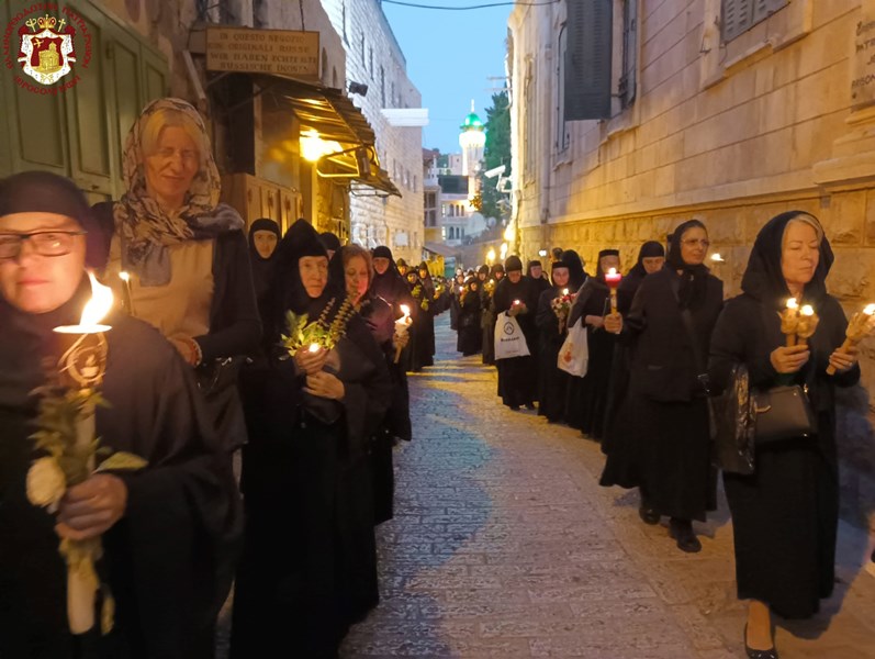 Η Ιερά Εικόνα λιτανεύτηκε δια της Οδού του Μαρτυρίου, της Αυλής του Ναού της Αναστάσεως, των Ιερών Προσκυνημάτων Αγίου Αλεξάνδρου Νιέφσκυ, Πραιτωρίου, Αγίων Θεοπατόρων Ιωακείμ και Άννης και Αγίου Στεφάνου.