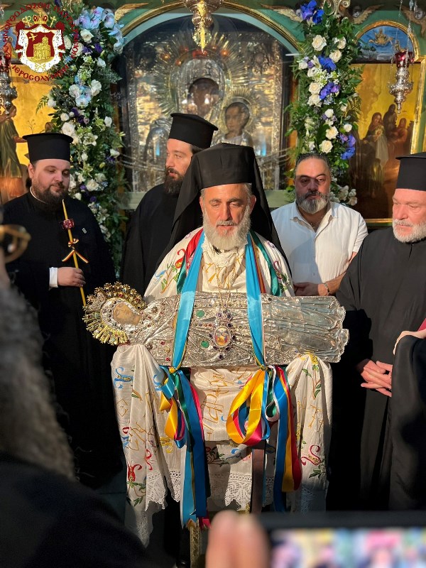 Η τελετή καθόδου της Εικόνας της Κομήσεως της Θεοτόκου πραγματοποιήθηκε σήμερα Παρασκευή 12/25 Αυγούστου 2023, μετά την Θεία Λειτουργία, που τελέστηκε στο παρεκκλήσιο του Μετοχίου της Γεθσημανής, στο οποίο φυλάσσεται η Εικόνα της.