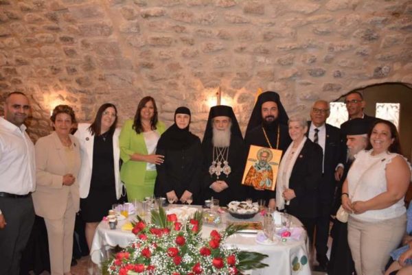 Μετά την απόλυση ακολούθησε λιτανεία τρεις φορές πέριξ του Ιερού Ναού και στη συνέχεια δεξίωση στο ηγουμενείο, όπου προσφώνησε ο Ηγούμενος Αρχιμανδρίτης π. Νήφων, αναλύοντας τις δραστηριότητες της ενορίας και ευχαριστώντας τον Μακαριώτατο για την συμπαράσταση του. Οι μαθητές και οι μαθήτριες του Κατηχητικού Σχολείου, υπό την καθοδήγηση της καθηγητρίας αυτών κ. Βιργινίας, έψαλλαν στην ελληνική και αραβική Αναστάσιμους ύμνους.