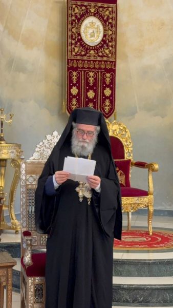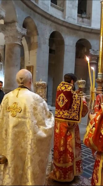 Ὁ Αναστάς ἐκ νεκρῶν Κύριος ὁ Θεός, διὰ πρεσβειῶν τοῦ Ἁγίου ἀποστόλου Θωμᾶ χαρίζοι τῷ Μακαριωτάτῳ κ.κ. Θεοφίλῳ ὑγιείαν, μακροημέρευσιν ἐπίσης καὶ εἰς ὅλην τὴν Ἁγιοταφιτικήν Ἀδελφότητα ,εὐχόμενοι ὅπως φέρῃ τὴν πολυπόθητον εἰρήνην εἰς ὅλον τὸν κόσμον καὶ ἰδιαιτέρως εἰς τοὺς Ἁγίους Τόπους, Ἀμήν».