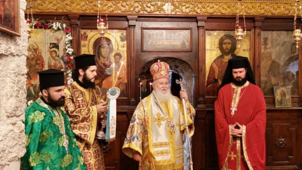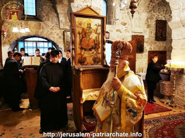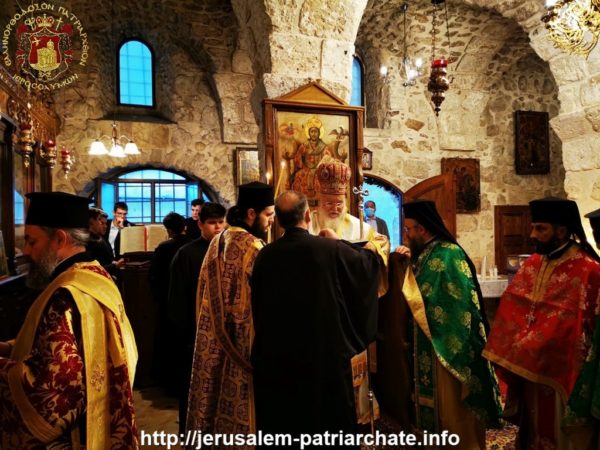 Κατά τη Θεία Λειτουργία επισκέφτηκε το Ιερό Παρεκκλήσιον και ο Μακαριώτατος Πατριάρχης Ιεροσολύμων κ.κ. Θεόφιλος για να προσκυνήσει με συνοδεία Αγιοταφιτών Πατέρων.