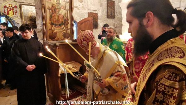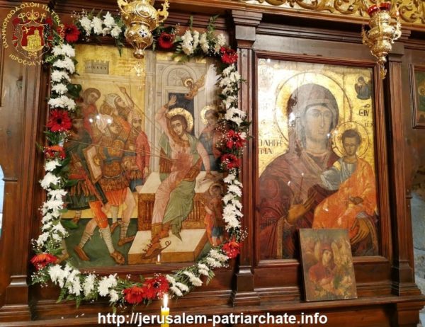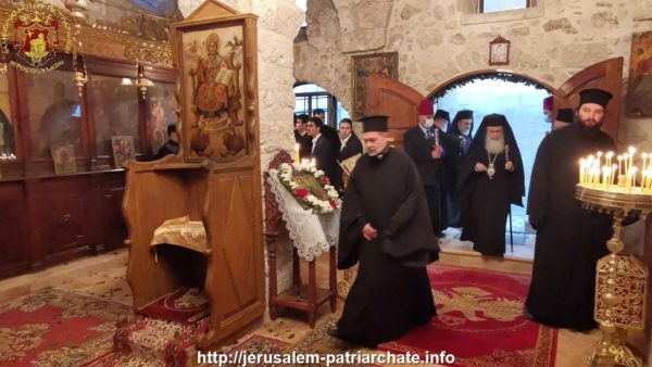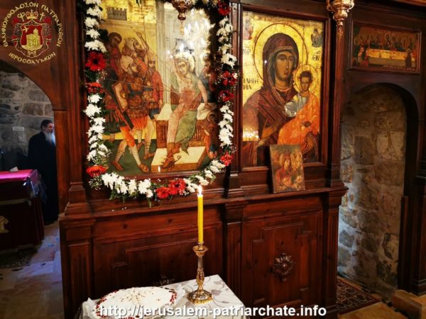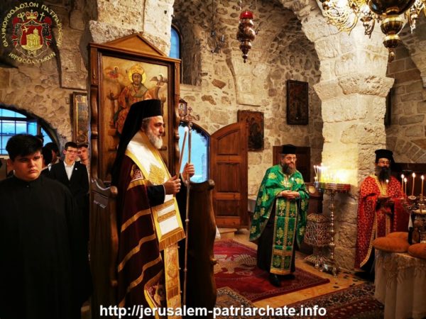 Η μνήμη του Αγίου εορτάστηκε στο παλαιό Παρεκκλήσιο του Πατριαρχείου μεταξύ της Πατριαρχικής Σχολής και του Κεντρικού Μοναστηριού το απόγευμα της εορτής με τον Πανηγυρικό Εσπερινό στον οποίο προεξήρχε ο Σεβασμιώτατος Μητροπολίτης Ελενουπόλεως κ. Ιωακείμ και σήμερα, ανήμερα της εορτής, με τη Θεία Λειτουργία στην οποία προεξήρχε ο Σεβασμιώτατος Μητροπολίτης Ναζαρέτ κ. Κυριακός συλλειτουργούντων Αγιοταφιτών Ιερομονάχων και των Αρχιμανδριτών Μακαρίου, Διονυσίου και Ισιδώρου του αρχιδιακόνου π. Μάρκου και του διακόνου Συμεών ενώ έψαλλε ο κ. Βασίλειος Γκοτσόπουλος με τους μαθητές της Πατριαρχικής Σχολής Σιών.