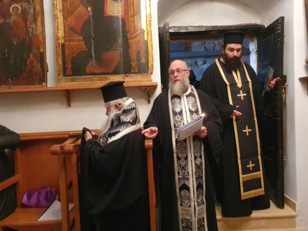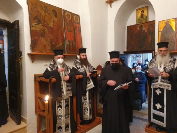 Προ τούτων,  ο μακαριστός Αρχιμανδρίτης Ευσέβιος Δαγγαλάς είχε έλθει στον μοναστηριακό Ναό των Αγίων Κωνσταντίνου και Ελένης και έψαλε ως Πρωτοψάλτης αυτού στην εορτή της Αποδόσεως των Χριστουγέννων, ημέρα Πέμπτη, την νύκτα δε της ημέρας ταύτης εθεάθη δι’ επίσκεψιν στον Ναό της Αναστάσεως για την λειτουργία της εορτής της Περιτομής του Χριστού και του Μεγάλου Βασιλείου.