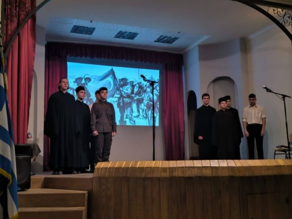 Διό καί τήν ἑσπέραν ταύτην προσήλθομεν εἰς τήν Πατριαρχικήν Σχολήν, ἵνα ἀπολαύσωμεν τόν ἑόρτιον φόρον τιμῆς τῶν ἀγαπητῶν μαθητῶν πρός ὅλους ἐκείνους, οἵτινες προσέφεραν ἑαυτούς ὡς νοητά ὁλοκαυτώματα εἰς τόν βωμόν τῆς ἐθνικῆς ἀνεξαρτησίας καί ἐλευθερίας τοῦ εὐλογημένου ἡμῶν ἔθνους.
