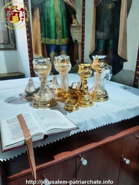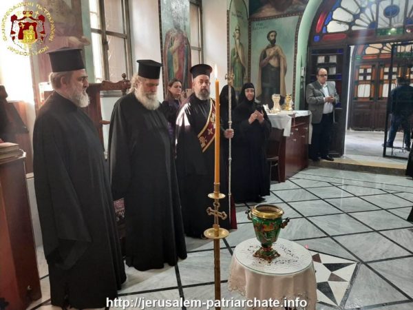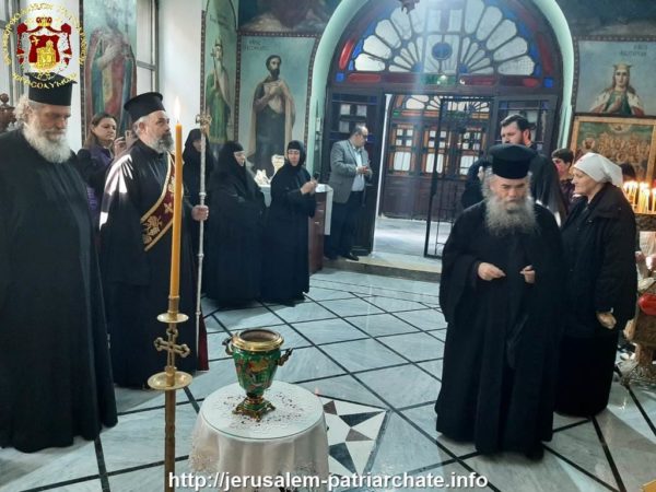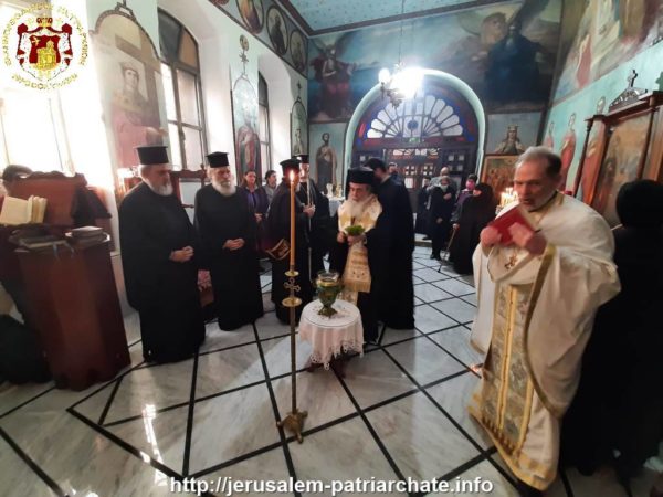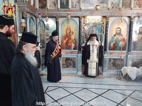 Ἀμᾷ τῷ τέλει τῆς θείας Λειτουργίας, προσῆλθεν ἡ Α.Θ.Μ. ὁ Πατήρ ἡμῶν καί Πατριάρχης Ἱεροσολύμων κ.κ. Θεόφιλος μετά Πατέρων Ἁγιοταφιτῶν διά προσκύνησιν καί δι’ ἁγιασμόν ἐπί τῇ ἀνακαινίσει διά μαρμαροστρώσεως τοῦ δαπέδου τοῦ ἱεροῦ Ναοῦ ὑπό τοῦ ἡγουμένου Ἀρχιμανδρίτου Μελετίου διά δωρεᾶς εὐσεβοῦς προσκυνητοῦ.