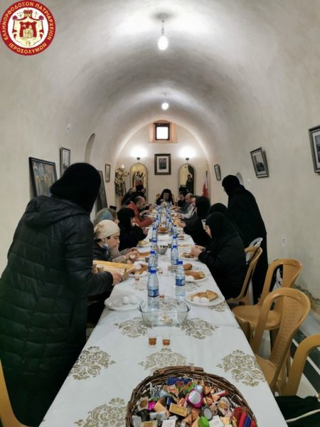 Εἰς τήν θείαν Λειτουργίαν ταύτην μετέσχον ἐπίσης Ἁγιοταφῖται μοναχοί, μοναχαί, καί ὀλίγοι λαϊκοί πιστοί ἐλθόντες ἐξ Ἱεροσολύμων καί ἐξ Ἱεριχοῦς, οὕς ἐδεξιώθη εἰς τό τέλος ὁ ἡγούμενος.