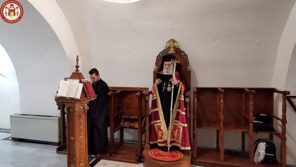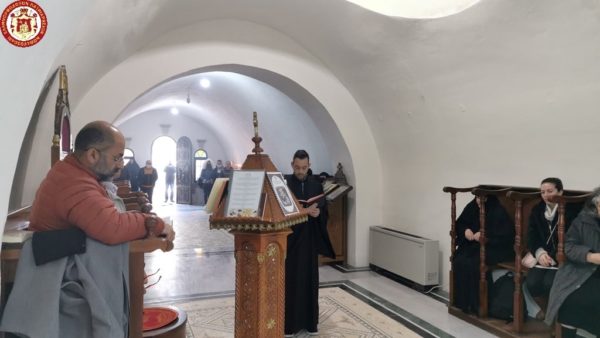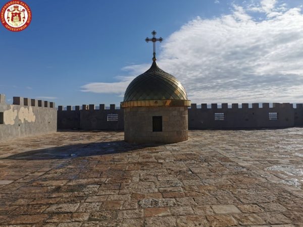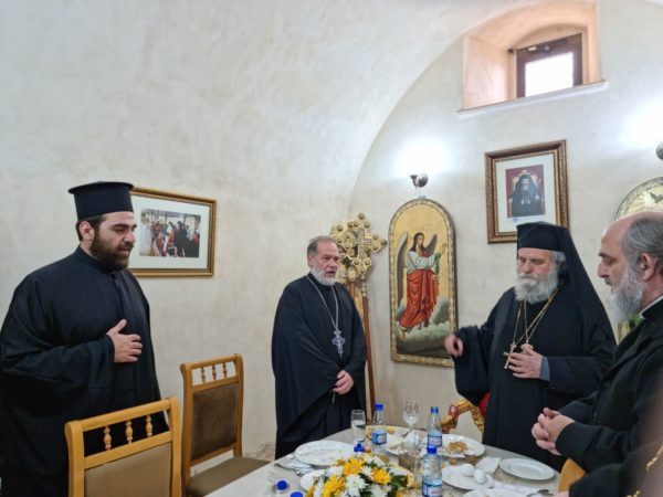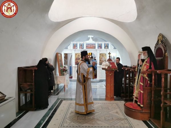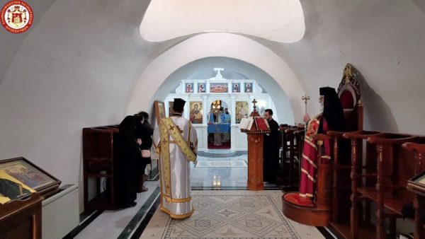 Στην Ιερά Μονή του Τιμίου Προδρόμου, η οποία βρίσκεται στην Δυτική Όχθη του Ιορδάνη ποταμού, κοντά στον τόπο του Βαπτίσματος του Κυρίου, τελέσθηκε Θεία Λειτουργία, προεξάρχοντος του Σεβασμιωτάτου Μητροπολίτη Καπιτωλιάδος κ. Ησυχίου, συλλειτουργούντων των Ηγουμένων και Ιερομονάχων από τις όμορες Ιερές Μονές της περιοχής της Ιεριχούς.