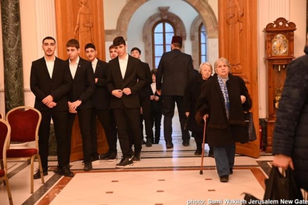 Προσκεκλημένοι στην τελετή ήταν ο Γενικός Πρόξενος της Ελλάδος στα Ιεροσόλυμα κ. Δημήτριος Αγγελοσόπουλος, η Πρόξενος κ. Μάντικα Άννα και συνεργάτες τους, Αγιοταφίτες Πατέρες και μέλη της Ελληνικής Παροικίας και του Αραβοφώνου ποιμνίου.