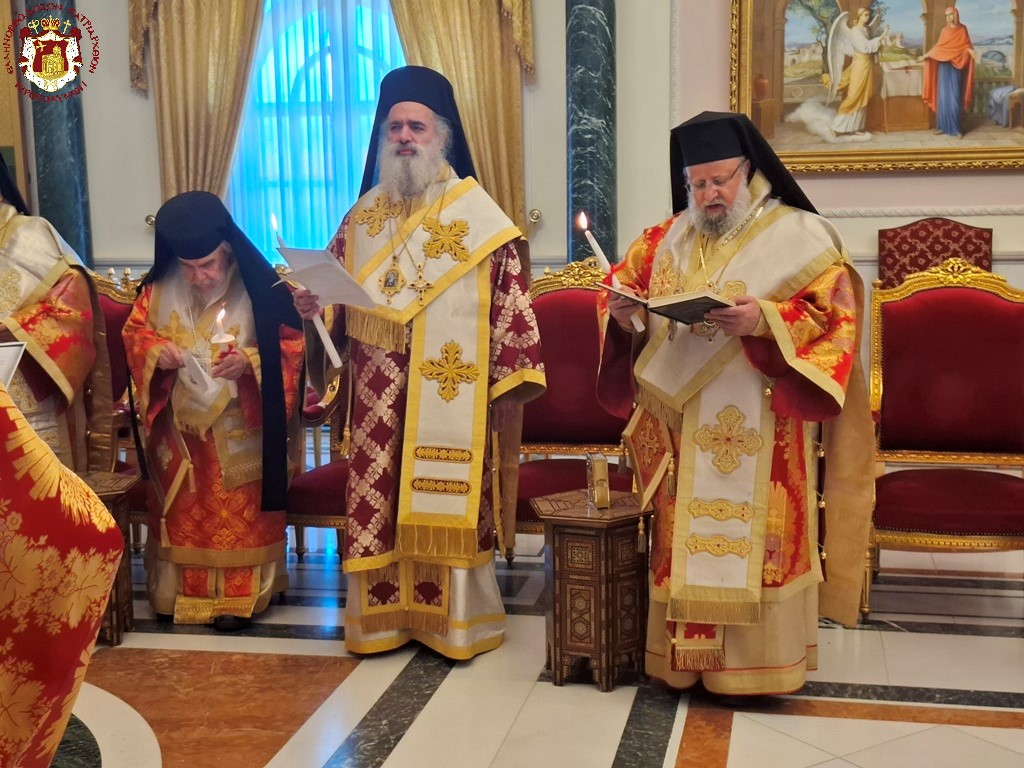 Ἐν ἀρχῇ ταύτης, εἰς τὴν αἴθουσαν τοῦ Πατριαρχείου, ὁ Μακαριώτατος καὶ οἱ Ἀρχιερεῖς ἐνεδύθησαν πλήρη ἀρχιερατικὴν στολήν καὶ ἱερατικὴν οἱ Ἱερεῖς καὶ ἀνέγνωσαν τὴν Θ΄ Ὥραν τοῦ Πάσχα, «Ἀνάστασιν Χριστοῦ θεασάμενοι», καθὼς ὁρίζει τὸ ἱερὸν Τυπικόν.