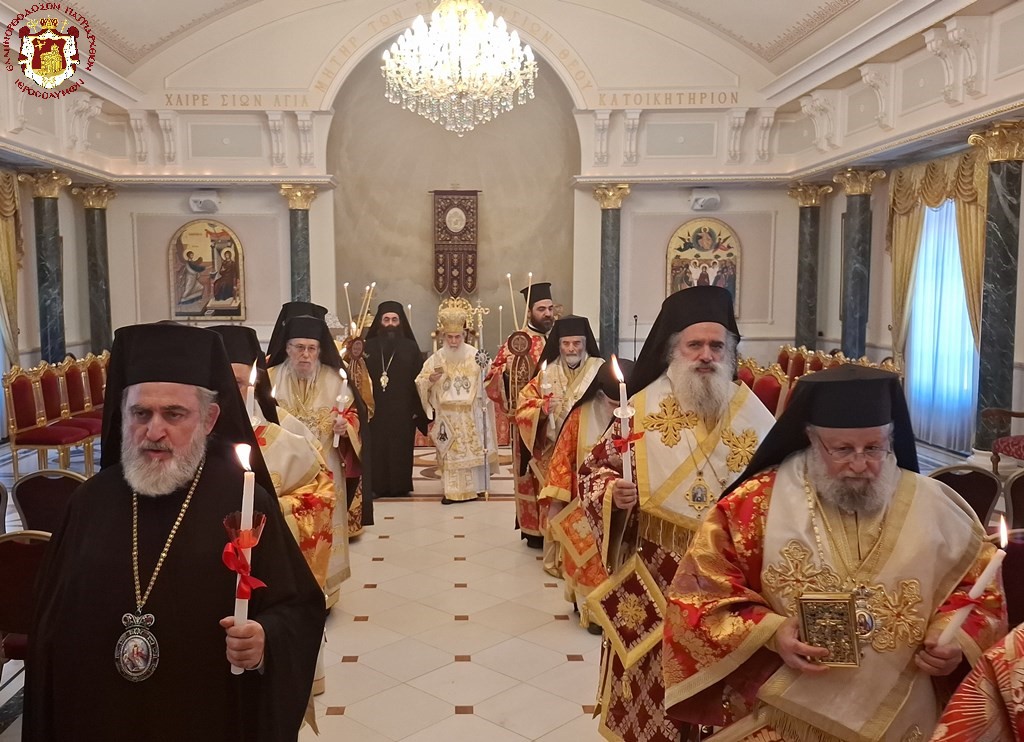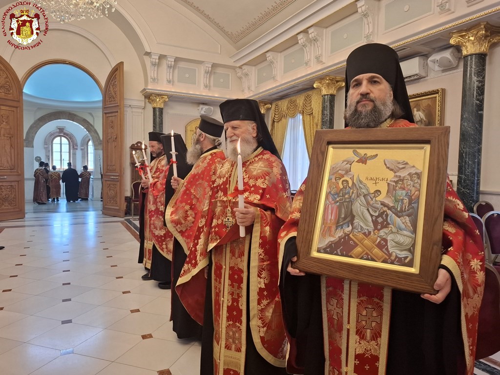 Πρό τῆς Πύλης τοῦ Πανιέρου Ναοῦ τῆς Ἀναστάσεως ἀνεπέμφθη δέησις, μεθ’ ἣν ἠκολούθησεν ἡ εἴσοδος εἰς τὸ Καθολικὸν.