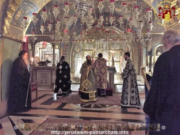 Θεία Λειτουργία των Προηγιασμένων Δώρων ετελέσθη επίσης και επί του Φρικτού Γολγοθά από τον Γέροντα Σκευοφύλακα Σεβασμιώτατο Αρχιεπίσκοπο Ιεραπόλεως κ. Ισίδωρο με τη συμμετοχή εντοπίων Ελληνορθοδόξων, Αραβοφώνων και Ρωσοφώνων πιστών.