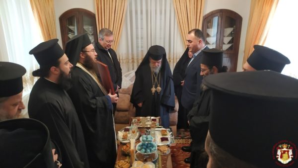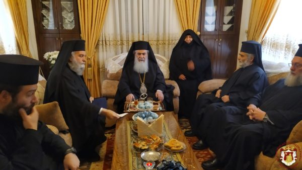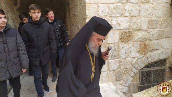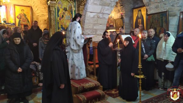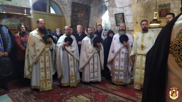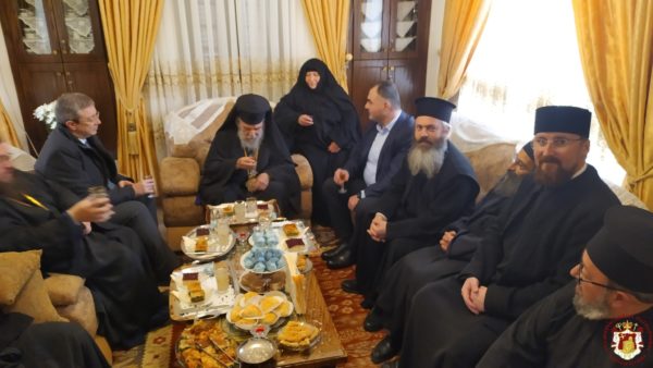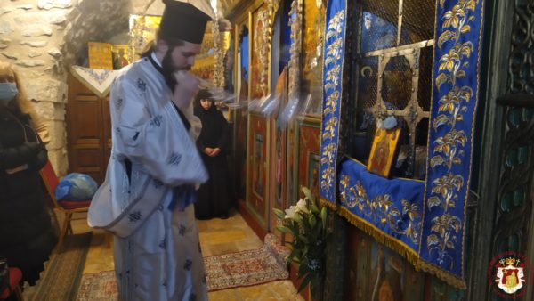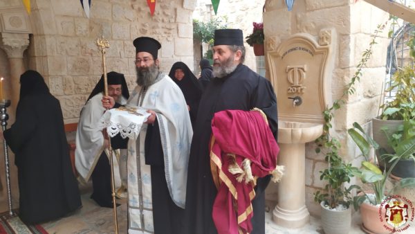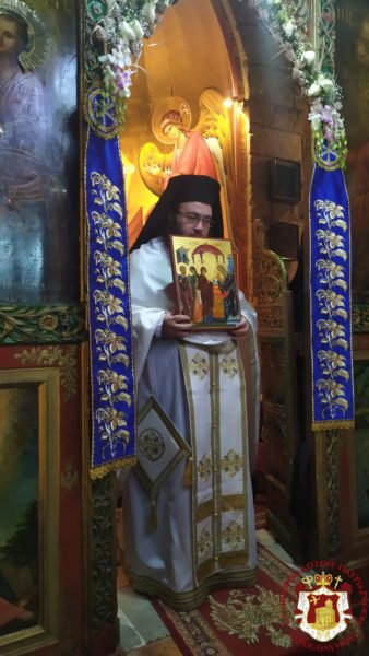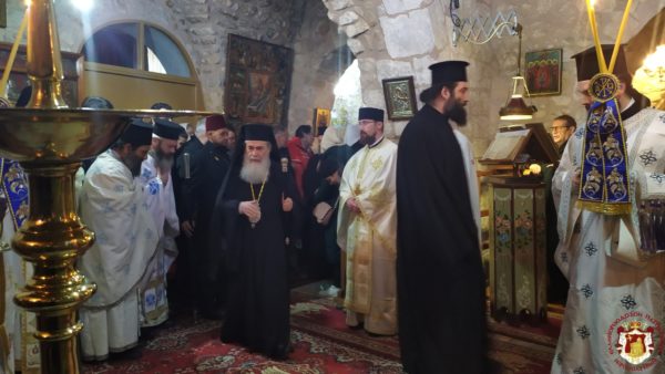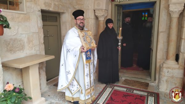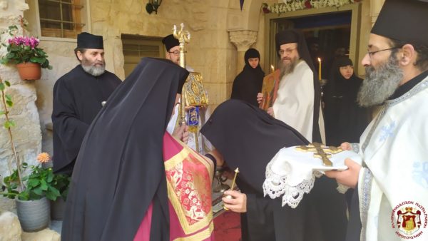 Κατά τη διάρκεια της Θείας Λειτουργίας ο Μακαριώτατος Πατριάρχης Ιεροσολύμων κ.κ. Θεόφιλος μαζί με Αγιοταφίτες Πατέρες επισκέφθηκε την Ιερά Μονή για να προσκυνήσει.