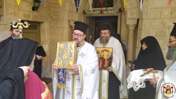 Την Πατριαρχική και την Αρχιερατική συνοδεία καθώς και το εκκλησίασμα δεξιώθηκε πλουσιοπάροχα στο ηγουμενείο και το προαύλιο του Ναού η οσιωτάτη ηγουμένη Σεραφείμα.