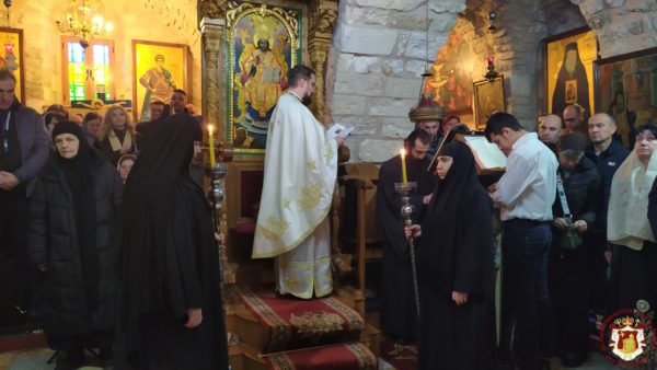 Το απόγευμα της παραμονής της εορτής τελέσθηκε Εσπερινός και ανήμερα το πρωί της εορτής Θεία Λειτουργία προεξάρχοντος του Σεβασμιωτάτου Αρχιεπισκόπου Κωνσταντίνης κ. Αριστάρχου, συλλειτουργούντων των Αγιοταφιτών Αρχιμανδριτών π. Ιερωνύμου και π. Μακαρίου, των Αραβοφώνων ιερέων π. Χαραλάμπους και π. Νεκταρίου, ιερέων από Ρουμανία, Ρωσία και Γεωργία και του Ιεροδιακόνου π. Συμεών.