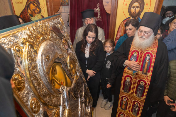 Κατά τη διάρκεια της Θείας Λειτουργίας προσήλθε διά προσκύνηση η Α.Θ.Μ. ο Πατριάρχης Ιεροσολύμων κ.κ. Θεόφιλος μετά Πατέρων Αγιοταφιτών.