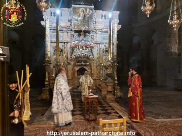 Η αγρυπνία τελέσθηκε με ευλογία και προτροπή του Μακαριωτάτου Πατριάρχη Ιεροσολύμων κ.κ. Θεοφίλου, από τους Σεβασμιώτατους Αρχιεπισκόπους Λύδδης κ. Δημήτριο και Μαδάβων κ. Αριστόβουλο.