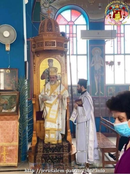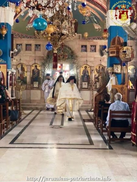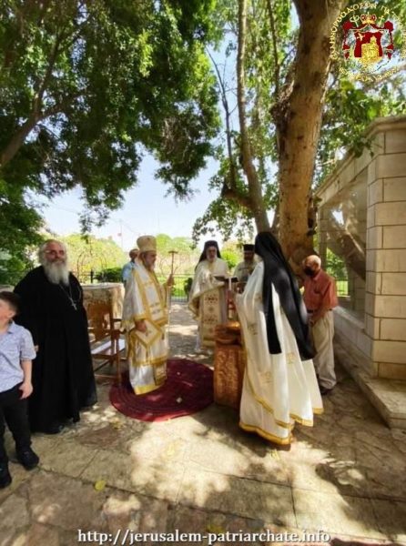 Της θείας Λειτουργίας προεξήρχε ο Σεβασμιώτατος Μητροπολίτης Ελενουπόλεως κ. Ιωακείμ, συλλειτουργούντων Αγιοταφιτών Ιερομονάχων, του ηγουμένου της Μπετζάλλας Αρχιμανδρίτου π. Ιγνατίου, του ηγουμένου της Μονής των Αγίων Θεοπατόρων Αρχιμανδρίτου π. Μελετίου και του Ιεροδιακόνου Ευλογίου, μετεχόντων δε των Αραβοφώνων πιστών της Κοινότητος Ιεριχούς.