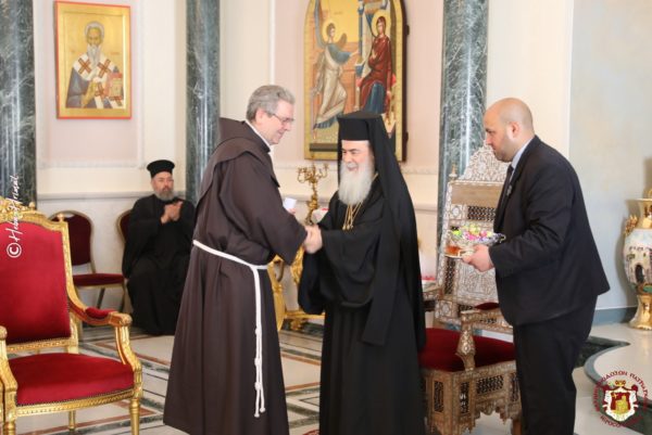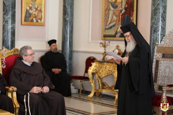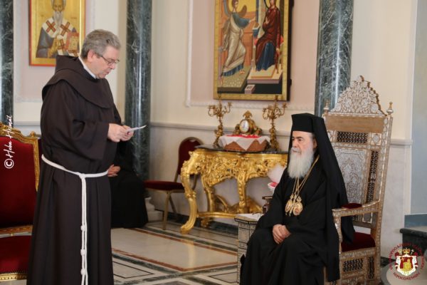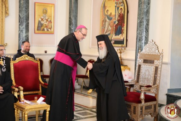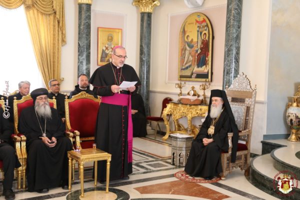 Τον Λατίνο Πατριάρχη και τους λοιπούς Αρχηγούς των Εκκλησιών προσφώνησε ο Μακαριώτατος Πατριάρχης Ιεροσολύμων κ.κ. Θεόφιλος.