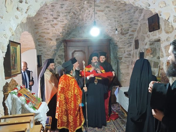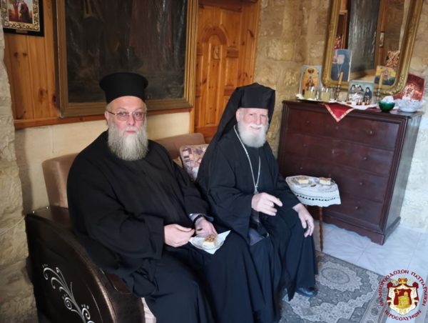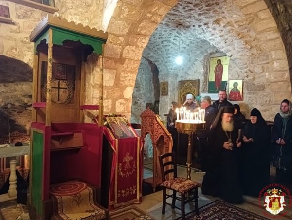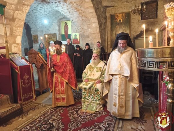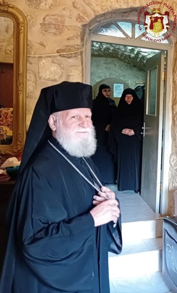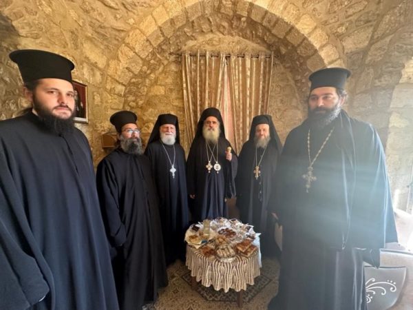 Διαρκούσης της θείας Λειτουργίας επεσκέφθηκε την Ιερά Μονή για προσκύνημα ο Μακαριώτατος Πατριάρχης Ιεροσολύμων κ.κ. Θεόφιλος μετά Πατέρων Αγιοταφιτών.