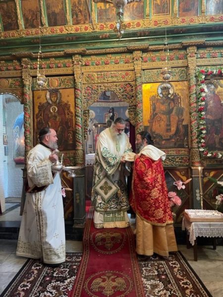 Την Πατριαρχικήν και την Αρχιερατικήν Συνοδείαν και το εκκλησίασμα εδεξιώθη ο φίλεργος ηγούμενος, οσιώτατος Αρχιμανδρίτης π. Αλέξιος.