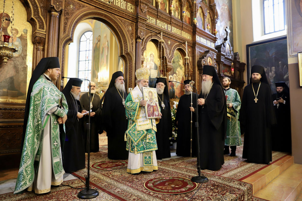 Μετά την απόλυση της Θείας Λειτουργίας ο Μακαριώτατος Πατριάρχης Θεόφιλος συνεχάρη τον αρχιμανδρίτη Αλέξανδρο Γέλισοφ, τη σύναξη των ιεραρχών, κληρικών ενοριτών και προσκυνητών του ιερού ναού Αγίας Τριάδας και προσέφερε στη Ρωσική Εκκλησιαστική Αποστολή εικόνα του Αγίου Νικολάου, Αρχιεπισκόπου Μύρων της Λυκίας.