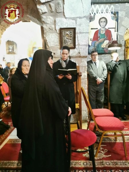 Την Πατριαρχική και Αρχιερατική Συνοδεία και το εκκλησίασμα δεξιώθηκε φιλοφρόνως η Καθηγουμένη μοναχή Σεραφείμα.