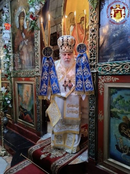 Στο Κοινωνικό της Θείας Λειτουργίας κήρυξε τον θείο λόγο ο Σεβασμιώτατος Αρχιεπίσκοπος Κωνσταντίνης κ. Αρίσταρχος στα ελληνικά, περί της εκκλησιολογικής και θεολογικής ερμηνείας και σημασίας της εορτής.