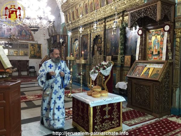 Αυτόν τον μέγα φωστήρα του Αγίου Πνεύματος τίμησε η Εκκλησία των Ιεροσολύμων στο προαναφερθέν παρεκκλήσιο με Εσπερινό χθες το απόγευμα, υπό του Γέροντος Καμαράση Αρχιμανδρίτου π. Νεκταρίου και με θεία Λειτουργία, σήμερα το πρωί, την οποία τέλεσε ο Σεβασμιώτατος Αρχιεπίσκοπος Κωνσταντίνης Αρίσταρχος, με συλλειτουργούς τον Αρχιδιάκονο Μάρκο και ψάλλοντες τον Ιεροδιάκονο Συμεών και την μοναχή Κυριακή.