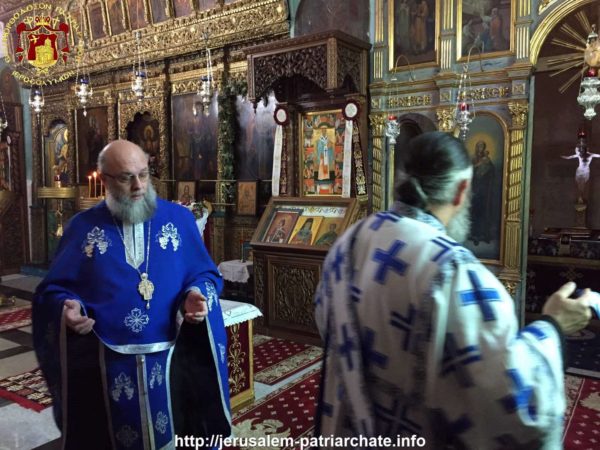 Αυτόν τον μέγα φωστήρα του Αγίου Πνεύματος τίμησε η Εκκλησία των Ιεροσολύμων στο προαναφερθέν παρεκκλήσιο με Εσπερινό χθες το απόγευμα, υπό του Γέροντος Καμαράση Αρχιμανδρίτου π. Νεκταρίου και με θεία Λειτουργία, σήμερα το πρωί, την οποία τέλεσε ο Σεβασμιώτατος Αρχιεπίσκοπος Κωνσταντίνης Αρίσταρχος, με συλλειτουργούς τον Αρχιδιάκονο Μάρκο και ψάλλοντες τον Ιεροδιάκονο Συμεών και την μοναχή Κυριακή.