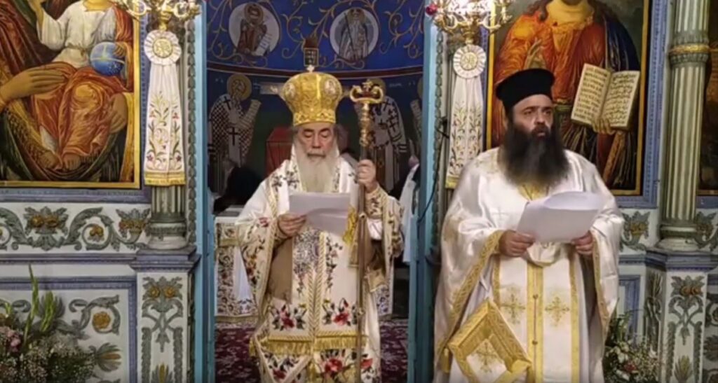 Εις το Κοινωνικόν της Θείας Λειτουργίας ο Μακαριώτατος εκήρυξε τον θείον Λόγον ελληνιστί και αραβιστί ως έπεται: