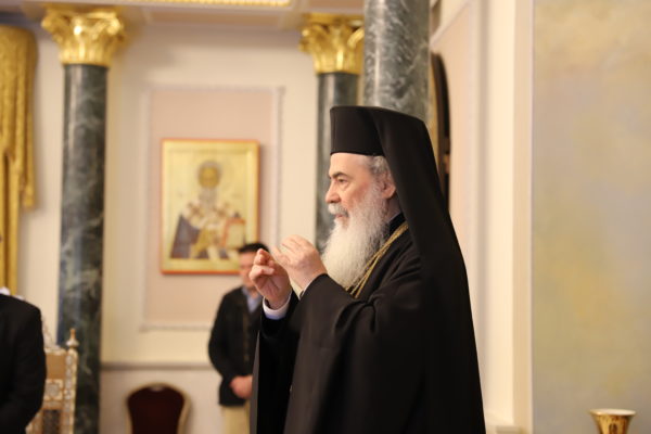 Της δεξίωσης προέστη ο Μακαριώτατος Πατριάρχης Ιεροσολύμων κ.κ. Θεόφιλος Γ’.