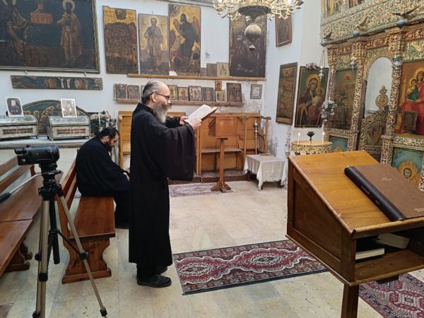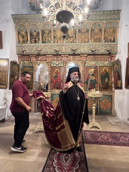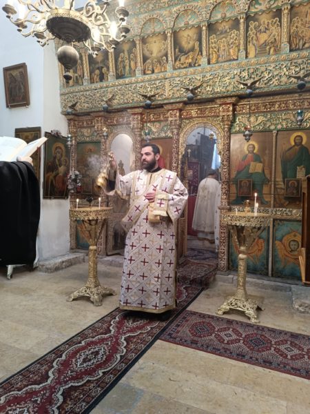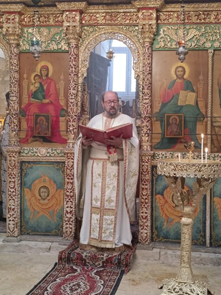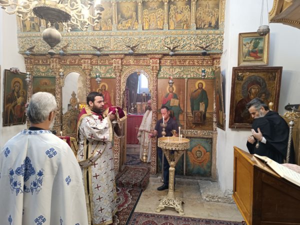Της Θείας Λειτουργίας και του Μνημοσύνου υπέρ αναπαύσεως των ψυχών προεξήρχε ο Σεβασμιώτατος Αρχιεπίσκοπος Γεράσων κ. Θεοφάνης, συλλειτουργούντων του Αρχιμανδρίτου π. Νικοδήμου, του εφημερίου του Αγίου Ιακώβου π. Φάραχ και του Ιεροδιακόνου π. Ευλογίου, ψάλλοντος του Ιεροδιακόνου π. Συμεών και με τη συμμετοχή ολίγων πιστών.