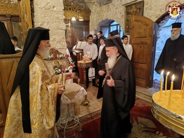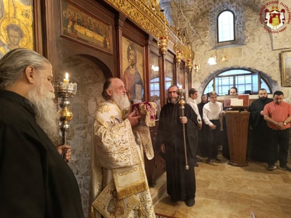 Κατά τη διάρκεια της Θείας Λειτουργίας προσήλθε για να προσκυνήσει ο Πατριάρχης Ιεροσολύμων κ.κ. Θεόφιλος.