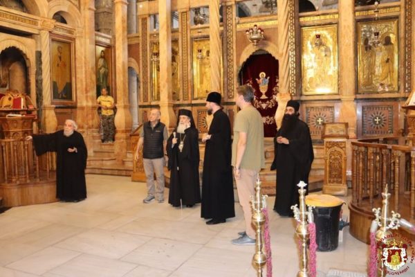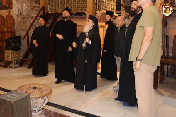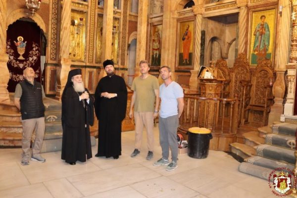 Για το έργο της συντήρησης των πολυέλαιων του Πανίερου Ναού της Αναστάσεως ενημερώθηκε ο Μακαριώτατος Πατριάρχης Ιεροσολύμων κ.κ. Θεόφιλος κατά τη συνάντηση που είχε με συντηρητές έργων τέχνης από τη Ρωσία στο Καθολικό του Ναού το πρωί της Παρασκευής 13 Οκτωβρίου 2023 παρουσία Αγιοταφιτών Πατέρων.