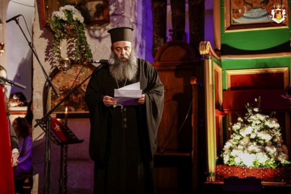 Ἡ σημερινή ἐκδήλωσις παρουσιάσεως ἐκκλησιαστικῶν ὕμνων καί ᾀσμάτων, ἐκτελουμένων καί ψαλλομένων ὑπό τῶν χορῳδιῶν τοῦ Εὐαγοῦς Ἱδρύματος τῆς Ρωμαιορθοδόξου Κοινότητος ἡμῶν Μπετζάλλας καί τῆς Πατριαρχικῆς Σχολῆς τῶν Ἱεροσολύμων ἀπηχεῖ τήν ἐν Χριστῷ ἑνότητα, ὡς διατυπώνει αὐτήν ὁ θεῖος Παῦλος λέγων: «οὐκ ἔνι Ἰουδαῖος οὐδέ Ἕλλην, οὐκ ἔνι δοῦλος οὐδέ ἐλεύθερος, οὐκ ἔνι ἄρσεν καί θῆλυ, πάντες γάρ ὑμεῖς εἷς ἐστε ἐν Χριστῷ Ἰησοῦ», (Γαλ. 3,28).