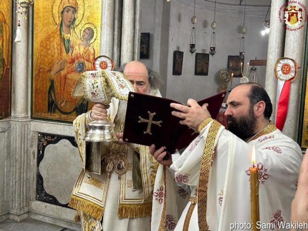 Εὐθύς ἤρχισεν ὁ Ἀναστάσιμος Ὄρθρος τῆς Διακαινησίμου ἑβδομάδος καί ἠκολούθησεν ἡ Θεία Λειτουργία, προεξάρχοντος τοῦ Μακαριωτάτου Πατρός ἡμῶν καί Πατριάρχου Ἱεροσολύμων κ.κ. Θεοφίλου καί συλλειτουργούντων Αὐτῷ τοῦ Σεβασμιωτάτου Μητροπολίτου Ναζαρέτ κ. Κυριακοῦ, τοῦ Σεβασμιωτάτου Ἀρχιεπισκόπου Κωνσταντίνης κ. Ἀριστάρχου, ἐπιμελουμένου τοῦ Πατριαρχικοῦ Ἐπιτρόπου ἐν Ἄκκρῃ Ἀρχιμανδρίτου π. Σιλουανοῦ καί συλλειτουργούντων Ἁγιοταφιτῶν Ἱερομονάχων, ἐν οἷς πρῶτος ὁ Γέρων Καμαράσης Ἀρχιμανδρίτης π. Νεκτάριος, τῶν Ἀρχιμανδριτῶν π. Μελετίου καί π. Ἀρτεμίου, τοῦ Ἀρχιμανδρίτου π. Νίκωνος ἀντιπροσώπου τῆς Ρωσικῆς Πνευματικῆς Ἀποστολῆς MISSIA, Πρεσβυτέρων τῶν ὁμόρων περιοχῶν, τοῦ Ἀρχιδιακόνου π. Μάρκου καί τοῦ Ἱεροδιακόνου π. Δοσιθέου, ψαλλούσης τῆς χορῳδίας τῆς Ἄκκρης, συσταθείσης καί ἐπιμεληθείσης ὑπό τοῦ μακαριστοῦ Ἀρχιμανδρίτου Φιλοθέου, τοῦ τελειωθέντος ἐν τῇ ἐπισκευῇ τοῦ τοίχου τοῦ Ἱεροῦ Ναοῦ τούτου καί μετεχόντων τοῦ Πρέσβεως τῆς Ἑλλάδος εἰς τό Ἰσραήλ κ. Κυριακοῦ Λουκάκη, τοῦ ἀντιπροσώπου τοῦ Ὑπουργείου Ἐσωτερικῶν τοῦ Ἰσραήλ κ. Σεζάρ Μαρτζῆε καί πολλῶν πιστῶν ἐν εὐλαβείᾳ καί ἀναστασίμῳ ἀγαλλιάσει.