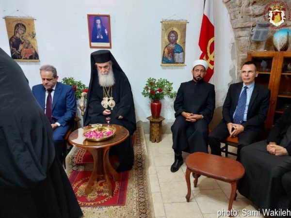 Κατά τήν ἑορτήν αὐτήν, ἡμέραν μνήμης τοῦ μαρτυρίου τοῦ Ἁγίου Γεωργίου τοῦ Τροπαιοφόρου, ἔλαβε χώραν ὑποδοχή τοῦ Πατρός ἡμῶν καί Πατριάρχου Ἱεροσολύμων κ.κ. Θεοφίλου ὑπό τῆς Κοινότητος Ἄκκρης, ἤτοι τοῦ ἡγουμένου Ἀρχιμανδρίτου π. Σιλουανοῦ, τῶν Σωμάτων τῶν Προσκόπων, τοῦ Προέδρου τῆς Κοινότητος κ. Φουάντ Μπρέϊκ, τῶν Ἐπιτρόπων τῆς Κοινότητος καί πιστῶν ἐξ ἄλλων Κοινοτήτων τῆς περιοχῆς δικαιοδοσίας τῆς Ἄκκρης.