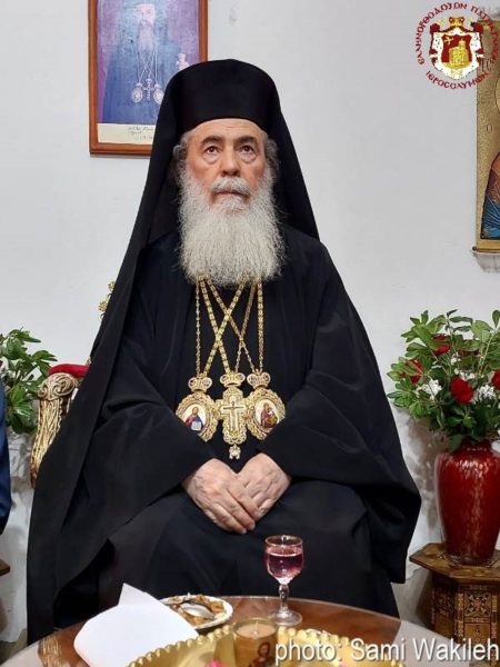 Κατά την προσφώνησή του, ο Πατριάρχης Ιεροσολύμων κ.κ. Θεόφιλος, ευχήθηκε, μεταξύ άλλων, όπως “Ἡ διπλή αὕτη ἑορτή τῆς Ἀναστάσεως, δηλονότι τοῦ Κυρίου καί Θεοῦ καί Σωτῆρος ἡμῶν Χριστοῦ, ὡς καί τῆς μνήμης τοῦ Ἁγίου Μεγαλομάρτυρος Γεωργίου, τοῦ γενομένου συλλειτουργοῦ τῶν Ἁγίων Ἀγγέλων ἐν τῇ ἐπουρανίῳ δοξολογίᾳ τοῦ Θεοῦ, μᾶς παρέχει ἐν μέσῳ τῶν ἐκ τοῦ πολέμου δοκιμασιῶν τῆς περιοχῆς ἡμῶν τήν ζῶσαν ἐλπίδα τῆς πίστεως εἰς τόν Θεόν τῆς ἀγάπης καί τῆς εἰρήνης”.