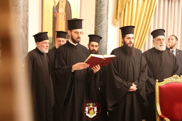 Μετά δέ τοῦ ὑμνῳδοῦ εἴπωμεν: «Ὁ πάσης δημιουργός τῆς κτίσεως, ὁ καιρούς καί χρόνους ἐν τῇ ἰδίᾳ ἐξουσίᾳ θέμενος, εὐλόγησον τόν στέφανον τοῦ ἐνιαυτοῦ τῆς χρηστότητός σου Κύριε, φυλάττων ἐν εἰρήνῃ καί ἑνότητι τήν Ἐκκλησίαν σου, τήν Γεραράν Ἁγιοταφιτικήν ἡμῶν Ἀδελφότητα, τό εὐσεβές χριστεπώνυμον ἡμῶν ποίμνιον, τήν ἁγίαν πόλιν Ἱερουσαλήμ καί τό εὐσεβές ἔθνον καί γένος τῶν Ρωμαίων – Ὀρθοδόξων, πρεσβείαις τῆς Θεοτόκου καί σῶσον ἡμᾶς» Ἀμήν.