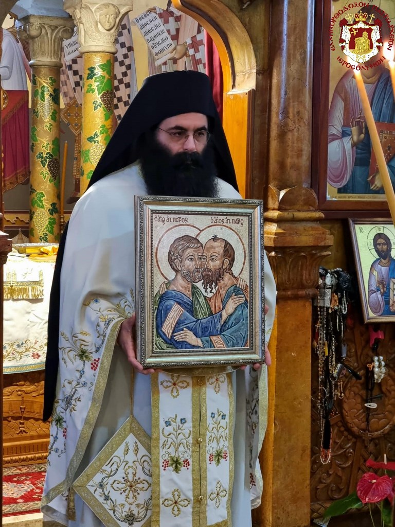 Η ιερά μνήμη των Αγίων Προκορυφαίων Αποστόλων Πέτρου και Παύλου τιμήθηκε στο Πατριαρχείο Ιεροσολύμων προεξάρχοντος του Πατριάρχη Ιεροσολύμων κ.κ. Θεοφίλου. Επίκεντρο της εορτής το παρεκκλήσιο που είναι αφιερωμένου στους Αγίους Πέτρο και Παύλο στην Ιερά Μονή στην πόλη της Καπερναούμ.