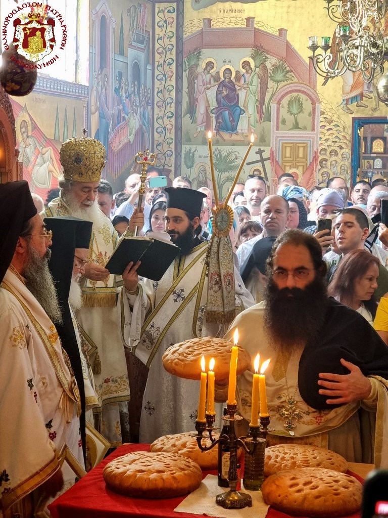 Ἅμα τῇ Ἀπολύσει τῆς θείας Λειτουργίας, ὁ φίλεργος και ἀνακαινίσας τήν Μονήν καί ἁγιογραφήσας τόν Ναόν μοναχός Εἰρήναρχος καί κόψας κατά τό ἔτος τοῦτο εἰδικόν μετάλλιον ἐπί τῇ συμπληρώσει ἑκατονταετίας ἀπό τῆς ἱδρύσεως τοῦ Ἱεροῦ Ναοῦ ὑπό τοῦ ἀοιδίμου Πατριάρχου Ἱεροσολύμων Δαμιανοῦ, ἐδεξιώθη τόν Μακαριώτατον καί τήν συνοδείαν Αὐτοῦ καί τό ἐκκλησίασμα εἰς τό Ἡγουμενεῖον καί ἀκολούθως παρέθεσε πλουσίαν ἀρτύσιμον τράπεζαν εἰς τόν προαύλιον χῶρον τῆς Ἱερᾶς Μονῆς.