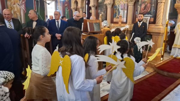 Τόν Εὐαγγελισμόν τοῦτον «τῆς μεγάλης χαρᾶς» καταγγέλλει σήμερον τό εὐσεβές Χριστεπώνυμον ποίμνιον τῆς Ἐκκλησίας τῶν Ἱεροσολύμων ἐκ τῆς εὐλογημένης ταύτης χώρας τῆς Παλαιστίνης εἰς ἅπαντα τόν κόσμον καί ἰδιαιτέρως εἰς τόν δοκιμαζόμενον λαόν αὐτῆς εἰς τήν Γάζαν καί τά κατεχόμενα ἐδάφη.